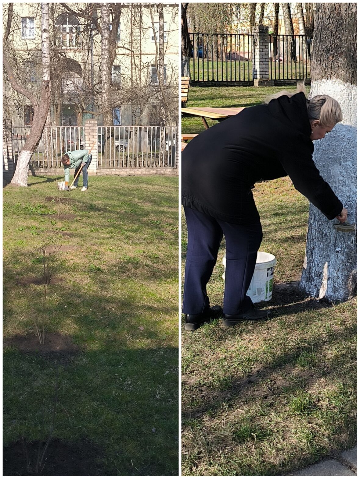 Трудовой коллектив принимает участие в городском субботнике 04.04.2026 — убирают прилегающую и закрепленную территории, белят деревья, убирают мусор.