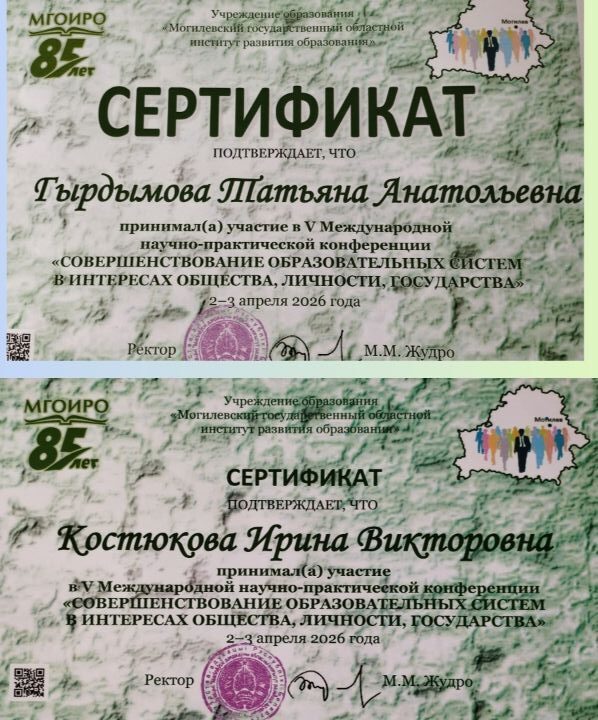 Благодарим наших педагогов — воспитателя дошкольного образования Ирину Викторовну и педагога-психолога Татьяну Анатольевну за участие в V Международной научно-практической конференции «Совершенствование образовательных систем в интересах общества, личности, государства»