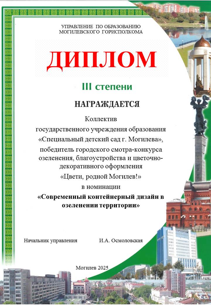 — 1 место среди учреждений дошкольного образования в городском конкурсе на лучшее новогоднее и рождественское оформление города Могилева
